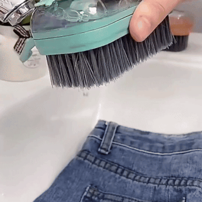 S pritiskom na gumb na vrhu krtače sprostite tekočino, kar omogoča natančno doziranje in učinkovito čiščenje brez nepotrebnega trošenja detergenta.